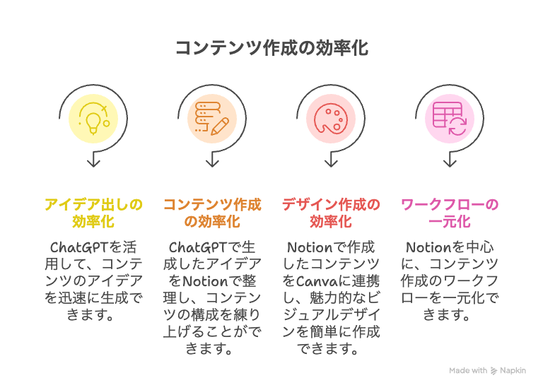 この連携は、一人チームでも「企画→構築→発信」まで完結できる最強の流れです。
